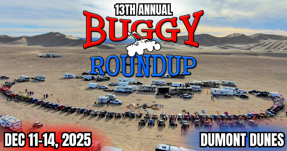 The Buggy Roundup is a long-standing Dumont tradition — a gathering of sandcar enthusiasts who come together once a year to enjoy the dunes, camp as a group, and have a great time. There are no sponsors, no fees, and no competition — just pure dune fun.