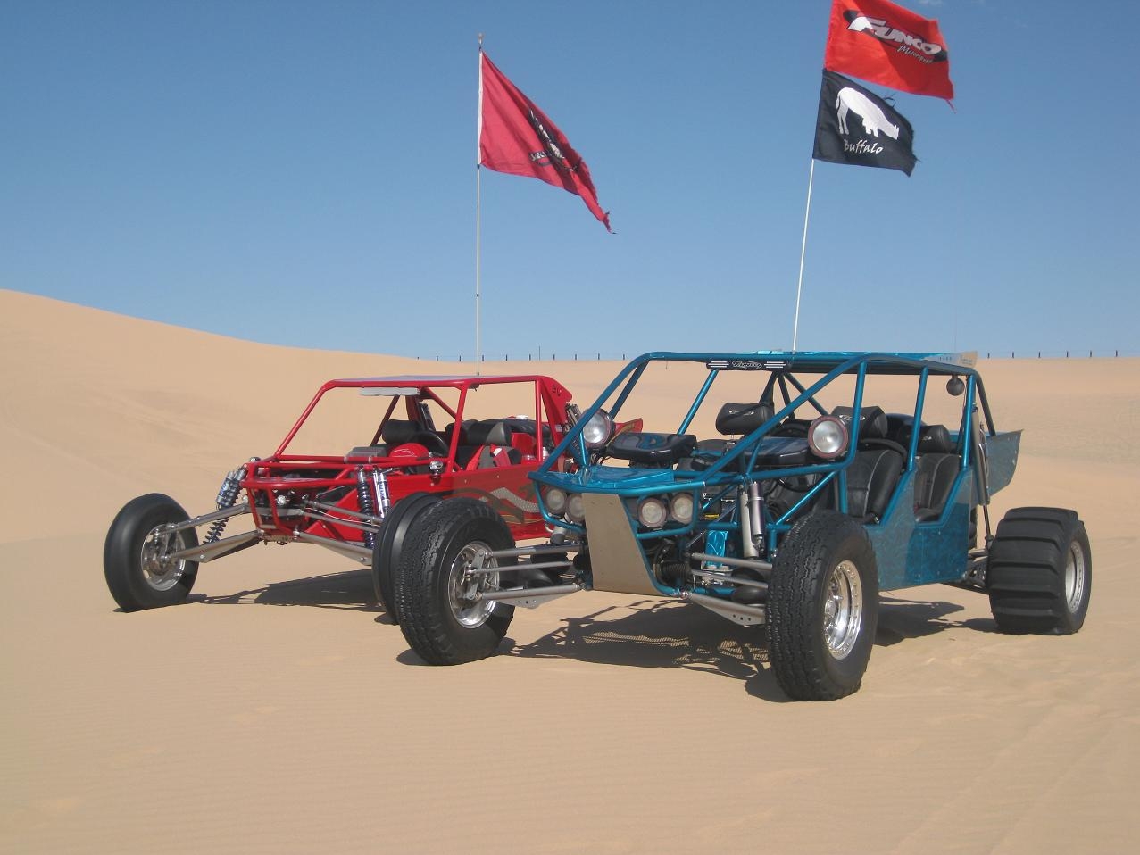 Buffalo Posted February 10, 2011 Share Posted February 10, 2011 This Funco has been the absolute best, most dependable machine I’ve ever owned and I’m pretty bummed about having to sell it. Those I’ve ridden and camped with, along with all the Funco owners out there will confirm what this buggy is capable of. This is John’s (Outfront Motorsports) previous buggy. I bought the car from John in June of 2009. At that time the car was completely stripped down to the frame. Mac (at Outfront) spent an entire week going over every inch of the frame, strengthening every possible gusset & joint. The new engine was John’s show motor from the Sand Sports Super Show in 2008 and the tranny was taken to Rancho for a complete rebuilt. Fresh powdercoat, all new belts, hoses, etc. The car was basically brand new in June of 2009. A year later I blew a head gasket and while tearing the motor down John noticed some things he didn’t like so we dropped in an entirely new short block. Since then I’ve had maybe 5 trips on the car. The motor is basically stock, with 6lbs of boost. Not crazy boost because I wanted longevity out of the car. I also wasn’t crazy about the seats so in August (2010) I replaced them with new Jet Trim seats and had Greg at Funco tab out the rear for buckets and build a box between the rear seats. Sorry, no pictures of that right now. Car lives in the trailer in Glamis but I’ll be there President’s Day if you’d like to have a look, go for a test drive or just come by and jawbone for a while. On to the details: Standard Items: • 2007 Funco Gen 4, Big 5 • Outfront Subaru 3.0 Six Cylinder – New June 2010. Dyno’d at right around 475 hp on 6 lbs of boost • Mendeola Sequential 5 Speed • 934 CV’s, 300m Axles • New paddles on the rear and Baja Pro’s, also new for the front • Funco chrome kit, mainly front suspension arms, rack, etc • 6 HID lights • King shocks, front and rear, all possible bypasses front and rear • Lunch box and matching Jet Trim leather cover • Funco storage bags under seat • Dual dash assemblies, drivers has 4 – 2 5/8 Glycerin Filled gauges, right side has radio setup Custom Items: • Tranny has Weddle Ring and Pinion and all possible upgrades to date including steel forks, 6 dog integral gear stacks, case has been completely polished • Outfront Bellhousing • LED gear indicator • Brand New Jet Trim Seats – Too new for most of the pictures • Rugged Radio system (4), car to car for both driver and passenger & iPod hookup. 4 Headsets • NEW Lowrance HDS-5 Baja GPS • Custom expanded metal floor in front • Oversized radiator with two super high flow 16" fans • Custom radiator scoop and valance • Custom gas filler design for easy valance removal • Power Steering with all stainless hard lines • Mechanical Fuel, Boost, Oil Pressure and Water Temp Gauges (all glycerin filled) • Huge 7 x 18" custom Air Filter • 300 m axles • Outback bars & X brace bars over head • Heavy Duty Inner Tie Rod upgrade for steering rack This is the best motor / tranny combo I’ve had to date. Some say the 3.0 has a slightly sluggish lower end but the GT30 turbo spools up as soon as you touch the gas. Combined with the top end of this motor, it seems to have the best of both ends (snappy 4 cyl & V8 grunt) I change the oil every 50 gal of fuel, service the CV’s every other trip and am pretty meticulous about detailing my equipment. I dune hard but take good care of my car and service it very regularly! This is NOT a drag or wheelie car so I don’t drop the clutch and hammer it. This car reacts best in the deep dunes; doing things must cars only dream of doing. This is not a fire sale. I paid top dollar for the car because it was worth it but I’m also realistic about today’s economy. That said, I’m selling the car for $45,000 OBO. If you want a $30,000 Funco, this is not your car but there are plenty out there and you’ll have a blast in any of them! For now, here are a few pictures. Sorry but I’ll take more on Presidents Day of the interior, dash, etc. NOTE: The new Jet Trim seats are not shown in most of these shots. Call for more photos or infomration. Thanks for looking. Steve 760-522-1218 Quote Link to comment Share on other sites More sharing options...