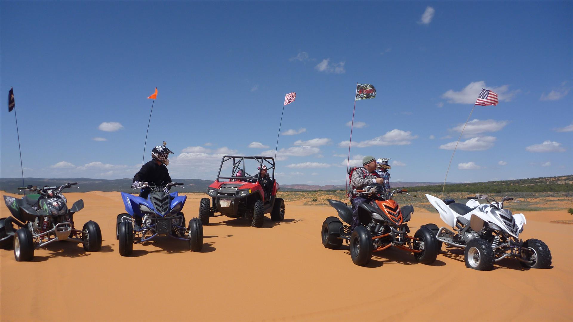 Adam @ GTP Off Road Posted May 27, 2012 Share Posted May 27, 2012 Since my Saturday gig got cancelled i decided to go ahead and make the trip to Coral Pink. My last trip was bad, only lasting 30 minutes due to wind. This trip was a load up quickly, put the raptor in the bed this time. Went to the store to grab the last minute needs and waited for Mike and Jodi to head out. We hit the road officially a little after 7pm. We made some good time, even taking the Cane Beds (???) road. I had no idea it was so crazy, but it was fun in the F150. Once we got there the meadows was pretty full, even for a Thursday night. We got our spot, saving some room for the folks coming in Friday. We unloaded, cranked up the fire, and were up pretty late. It was fairly windy, nice repeat from my last trip. i got blamed for the wind, especially since as i was loading up the wind basically stopped. We went to the top if the hill Thursday night and found some cell reception, pretty spotty and not real good but it was there. Friday morning was our first run. It was pretty fun, then Mike had to say "do you notice the lack of power," which i hadn't yet. Once he said that though, i noticed it all the time. Lack of power and lots of time spin even with my Skat~Traks. Much different sand for sure. I like the combination of trails and dunes. reminds me of riding in Oregon Dunes. Friday evening trip was over to ranger station with Mike, Jodi and I. As we were making the run i noticed Jodi wasn't behind me, so I got Mike to come back and we looked for her. She lost momentum, and i sand blasted her when i got to the top making it so she couldn't see. She was hanging on for dear life at the top of a steep 20 - 30 dune. I grabbed the bike so she could get off, turned the bike around, and slid it to the bottom. Tried to kick start the damn thing and finally got it to start. tried to go and killed it. Fired it up again, moved 10 feet killed it. Mike had to come down, one kick and it started. tried to go again, killed it. Finally got it going again, and tried to go up the hill but before i even got there it was bogging out. I guess it was floaded or something. I looped around and it started running better. Hit the hill in second and, well, why let off... so i jumped the top stopped and gave the bike back to Jodi. I will stick to my electric start, and raptor power thank you very much. It did jump nice though. Mikes friends came in Friday night and we reset the camp a little. The whole camp area was filling in pretty good. Still windy, and i was still getting blamed. Saturday went on a few rides with Charley, Mike Jodi and I. good times. Mike and Jodi had a few mechanical issues. The RZR was running lean and mike found the boost line to the controller was off. he got the fixed and tuned it up. it was running good. First run Saturday Mike had a flat on his Raptor. Later run Jodi had her Exhaust tip come lose, Charley helped Mike fix it up with some riviets and the next run it all fell out anyway. Jodi said it was running better with out it.. lol I got video and a few photos but i need to edit them. Quote Link to comment Share on other sites More sharing options...